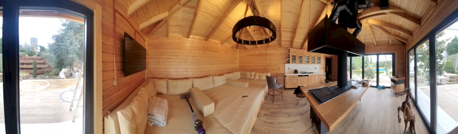| Çatı | Ahşap Taşıyıcı mertekler üzerine ahşap lambri kaplama (16-18 mm X 115 -185 mm) yapılacaktır. Mertekler gözükecektir. İsteğe göre ters tavan lambri sistemi de uygulanabilir |